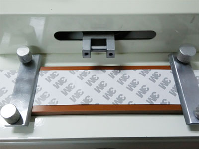 油墨耐摩擦試驗(yàn)機(jī)試驗(yàn)步驟圖解取摩擦體用白色道林紙(白色A4紙)長寬為50㎜×200㎜后,固定于上摩擦體(黑色橡膠體上)。...