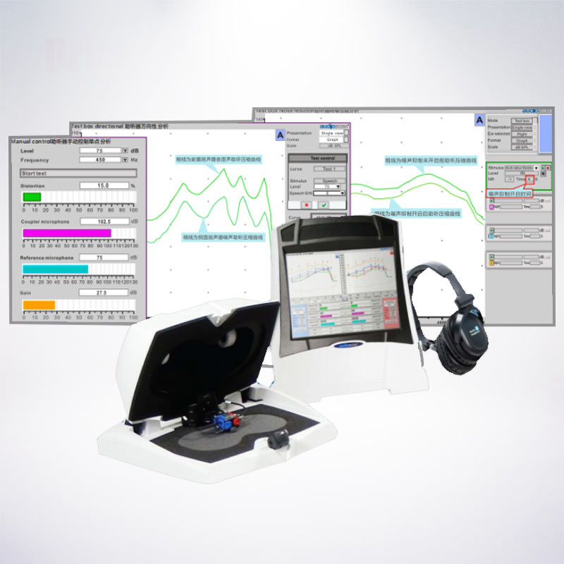 一、雙側(cè)助聽(tīng)器同時(shí)驗(yàn)證:1、Speechmap”吉語(yǔ)頻譜圖清晰可視目標(biāo)值2、調(diào)試過(guò)程看得見(jiàn),放大的聲音可同步監(jiān)聽(tīng)3、助聽(tīng)...