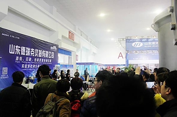山東(國際)制漿造紙技術(shù)及裝備展覽會已成功舉辦十年,展會展出面積12000平方米,參展商約400余家,專業(yè)觀眾達(dá)15000余人,山東德瑞克攜2015新上市升級版產(chǎn)品亮相本次展會,其中DRK101A拉力試驗(yàn)機(jī)采用進(jìn)口直流伺服電機(jī)和滾珠絲桿構(gòu)造性能更穩(wěn)定, 中英文自由切換配合智能化 觸摸屏操作更便捷,且實(shí)時顯示曲線和數(shù)據(jù)。此外,平滑度儀,耐破度儀,耐折度儀,撕裂度儀,紙箱抗壓機(jī)等十余種新型檢測儀器也是山東德瑞克本次展會展出的得意之作,美觀,穩(wěn)定,智能化,適中的價格,深得與會客戶的一致認(rèn)可與好評。