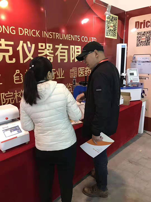 上午九點,一曲歡快的《好運來》為展會開幕式增添了濃墨重彩的一筆。本次展會,我們展出的產(chǎn)品有:電子拉力試驗機(jī)、壓縮儀、耐破度儀、測厚儀、熱封儀、耐折度儀、戳穿度儀以及各種取樣器。展會開始不久,憑借產(chǎn)品的外觀、性能以及參展人員專業(yè)的產(chǎn)品知識、銷售技能,我們的展臺前來了一波又一波的觀展人員。為企業(yè)帶來了更深層次的潛在客戶。